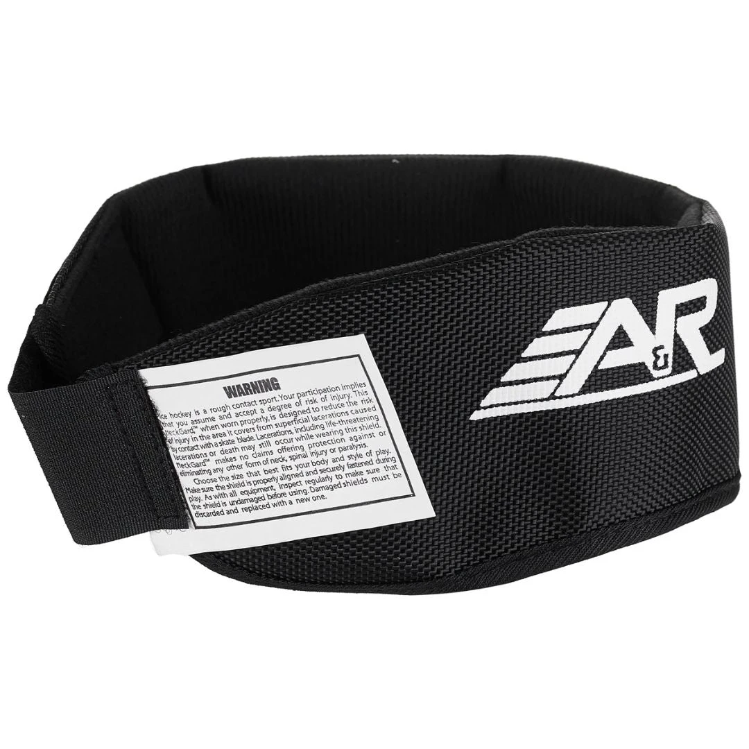 - The A&R Neckguard offers a lightweight design but built with a highly durable ballistic nylon that greatly reduces the risk of lacerations caused by skate blades. It provides great coverage both in width and around the neck while remaining comfortable for the player with a soft liner. An adjustable Velcro strap keeps the neck guard secure around the neck with a long closure design to help players obtain the perfect fit.