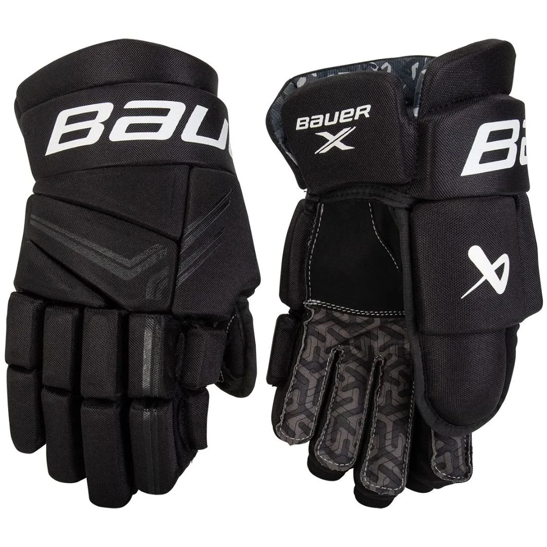 - The Bauer X glove also includes a TAKTILE palm to make it easier for new-to-hockey players to grip their stick. The two-piece flex thumb will make it easier for movement but also prevent hyperextension.