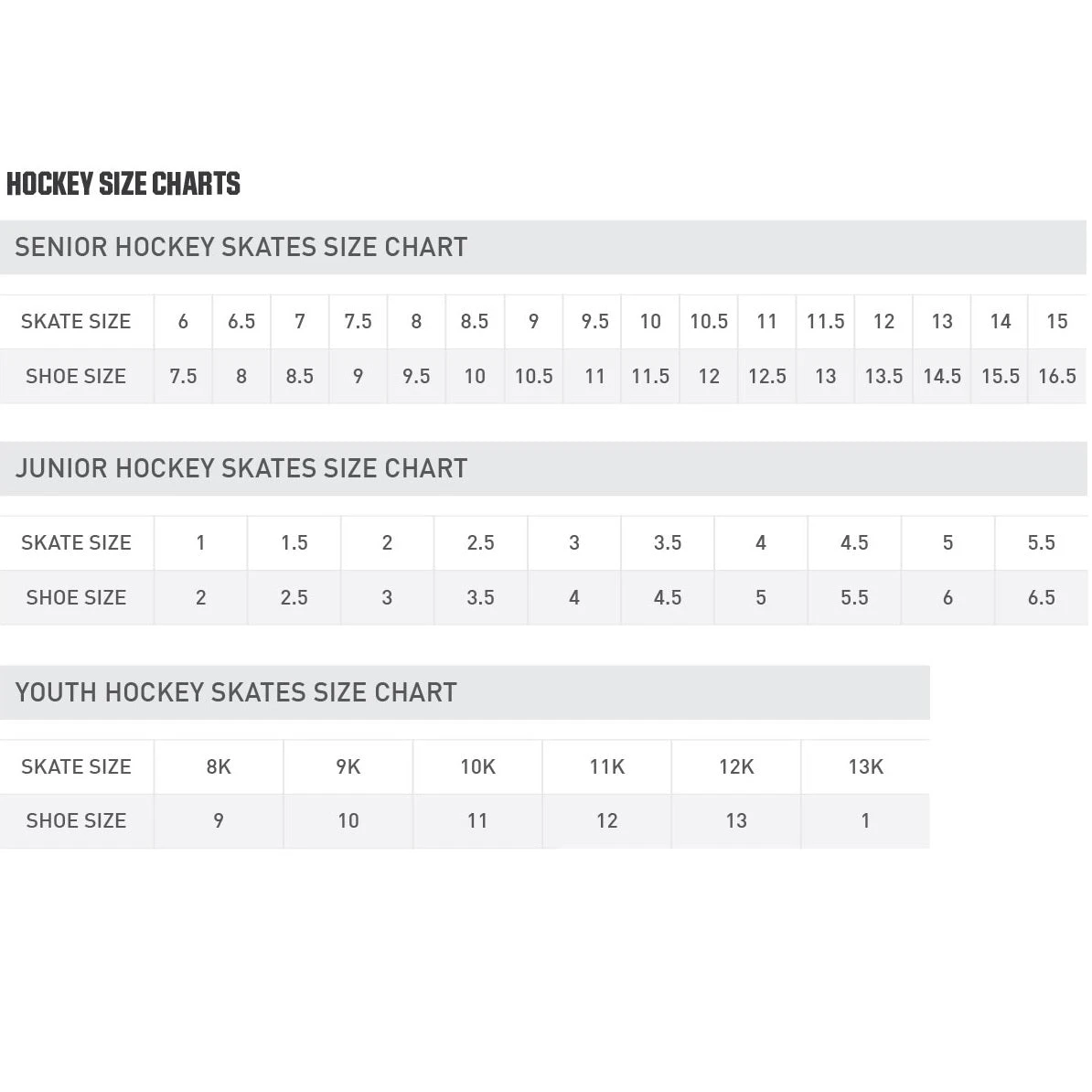 - Finally, moving down to the chassis and wheels, The CCM Super Tacks 9350 has a durable dual aluminum fastframe chassis. This chassis is a designed to be lightweight and great for skating position. They are pairing that with Rizon Abec 5 bearings and 4 – CCM Konixx 80mm 82A durometer wheels for the Senior skate, which will be perfect for all surfaces.