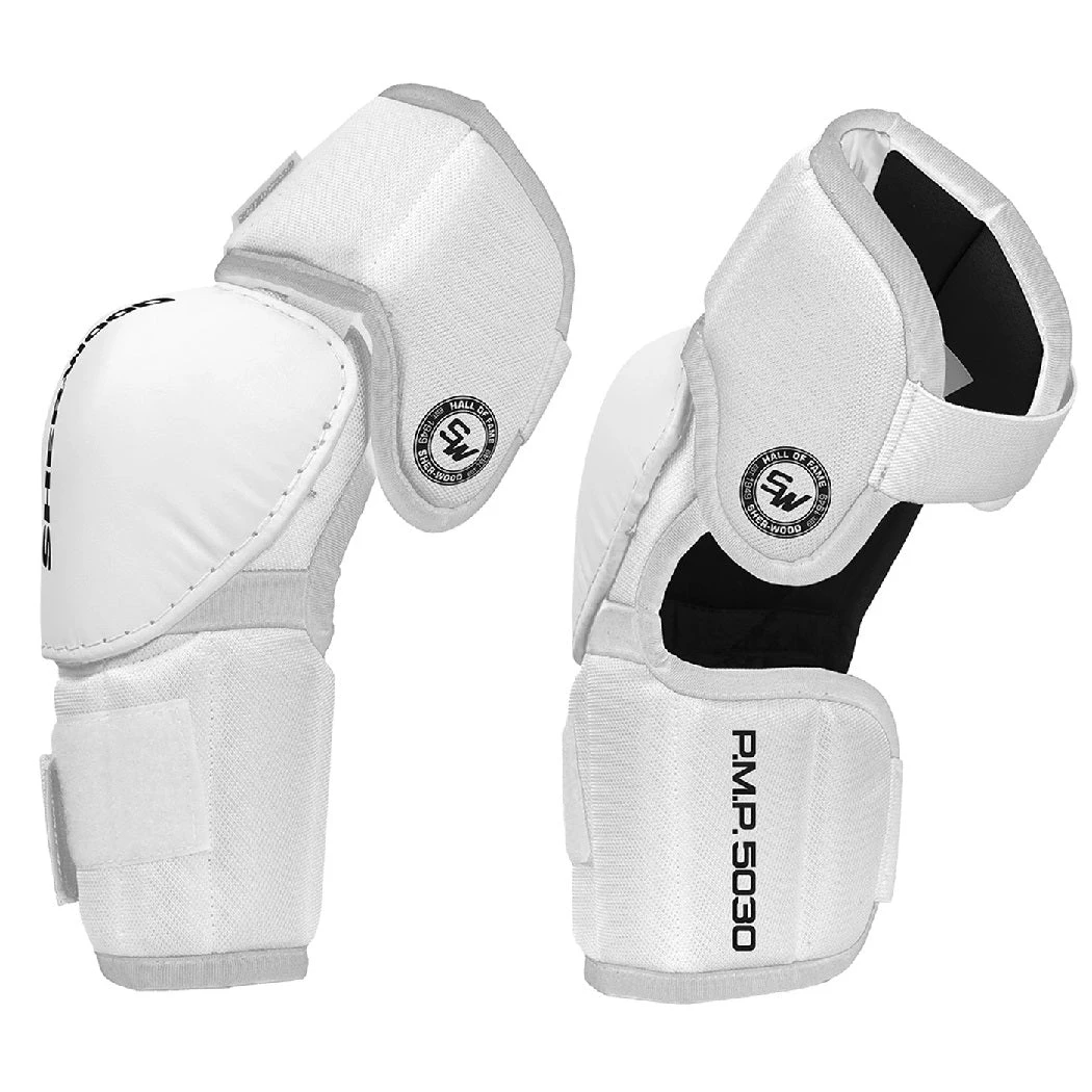 - The Sherwood 5030 HOF Senior Elbow Pads deliver lightweight protection and performance with a large forearm protector, PE inserts, and three elastic straps for great fit and mobility. They’re the classic old school look and feel desired by so many of us beer league players.