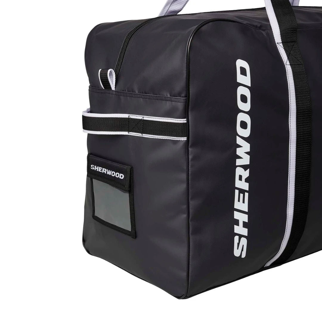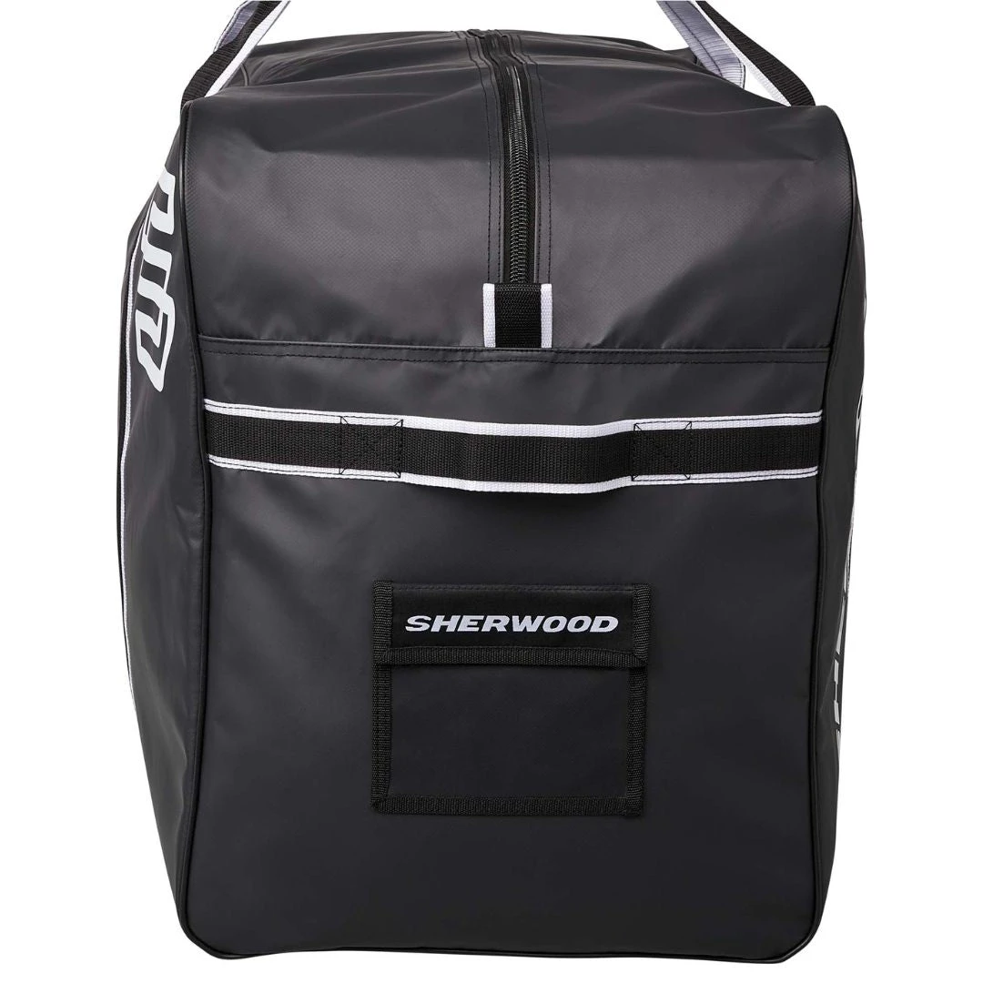 - The Sherwood Pro 2.0 Goalie Carry Bag will bring years of reliable toughness to the locker room. Built with extremely strong tarpaulin, its shell is waterproof and highly abrasion-resistant, making this a standout choice for players looking for a bag that will last. Dual-layered handles ensure they last just as long as the hockey bag while adding color contrast to the visual looks.